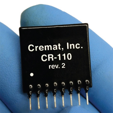 The CR-110-R2 circuit is in an 8-pin SIP package (0.100" spacing). Pin 1 is marked with a white dot for identification.