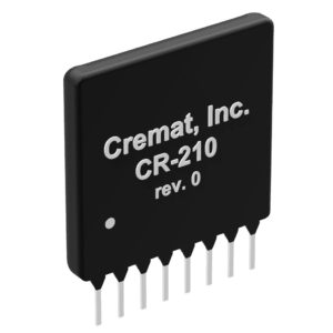 The CR-210-R0 circuit is contacted via an 8-pin SIP connection (0.100" spacing). Pin 1 is marked with a white dot for identification.